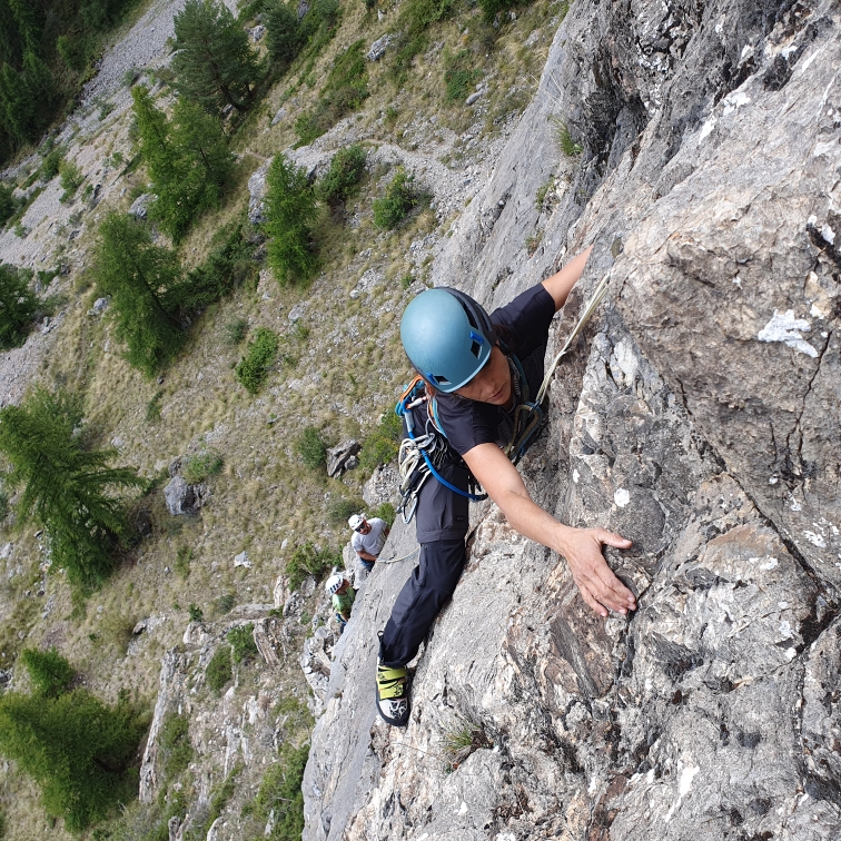 L’escalade en grande voie trad’, c’est une expérience complète. Entre dépassement de soi, exploration de la nature, utilisation de son environnent naturel pour s’élever et se protéger sans traces (fissures, renfougnes, tafonis, arêtes, dièdre et blocs..) !